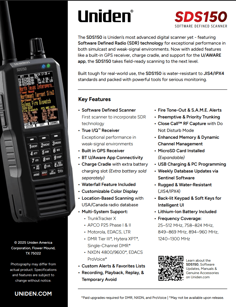 Uniden SDS150 True I/Q Digital Handheld Scanner